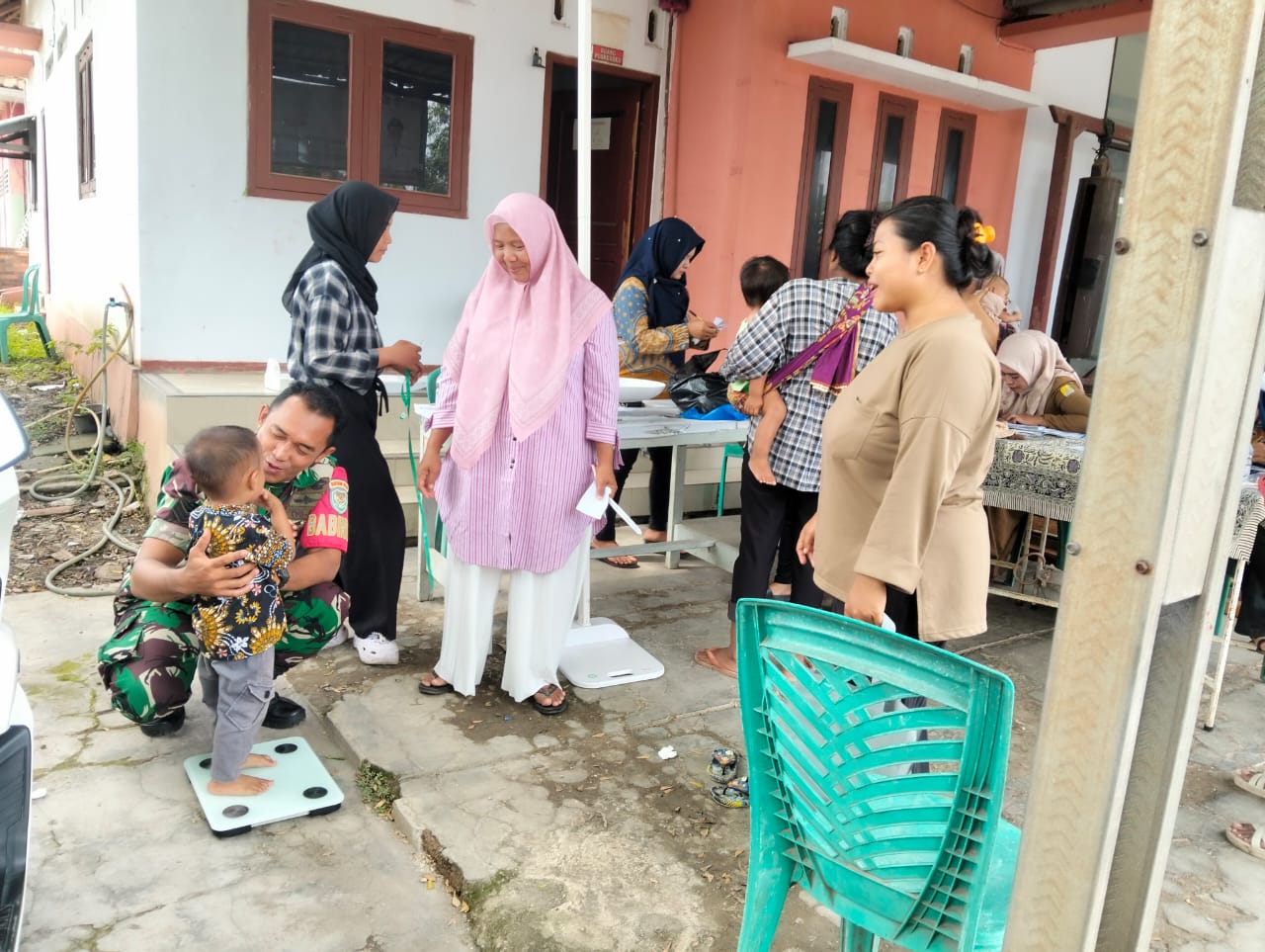 Sertu Rosa menyampaikan bahwa kehadirannya sebagai Babinsa merupakan bentuk dukungan terhadap peningkatan kesehatan masyarakat khususnya balita, sekaligus memastikan kegiatan berjalan tertib dan lancar.