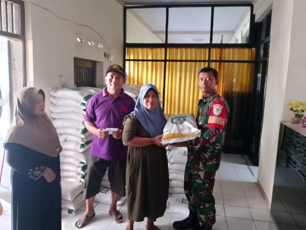 Babinsa Koramil 2017/Ciwaringin Monitoring Pembagian Bantuan Pangan di Desa Gintung Tengah