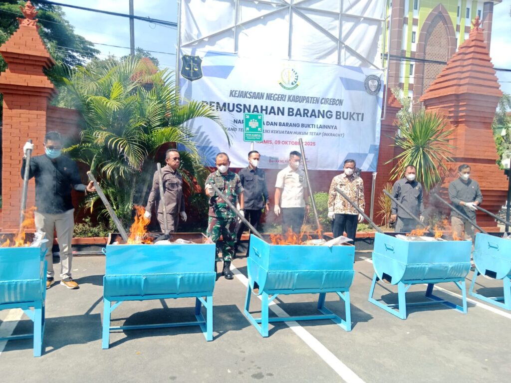 Cirebon, 09 Oktober 2025 — Komando Distrik Militer (Kodim) 0620/Kabupaten Cirebon turut ambil bagian dalam kegiatan pemusnahan barang bukti tindak pidana yang telah berkekuatan hukum tetap (inkracht) berdasarkan Surat Nomor: PRINT-3018A/M.2.29/Kpa.5/09/2025. Kegiatan ini diselenggarakan oleh Kejaksaan Negeri Kabupaten Cirebon, bertempat di halaman kantor Kejaksaan di Jl. Sunan Drajat No.6, Kelurahan Sumber, Kecamatan Sumber, Kabupaten Cirebon.